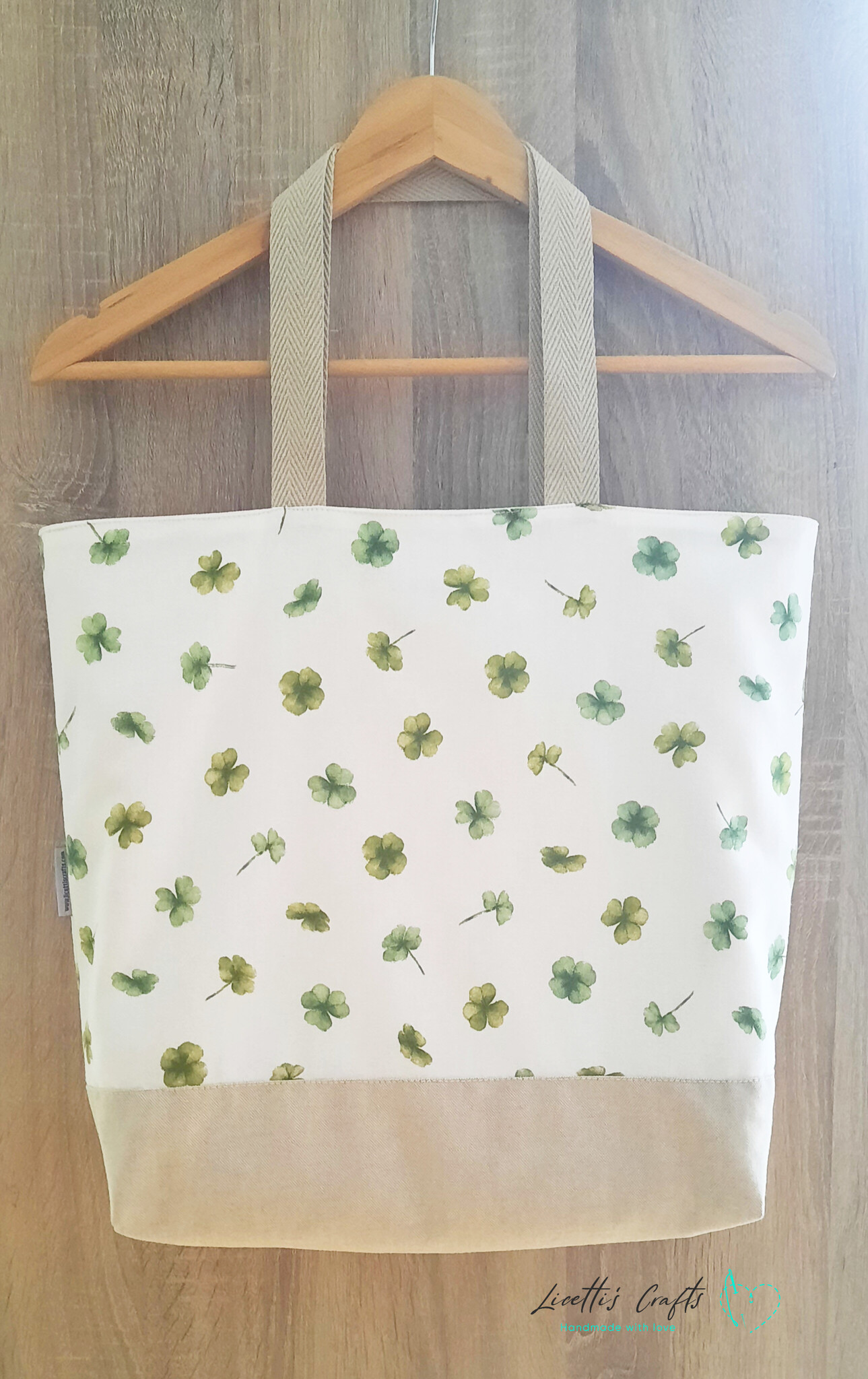 Si buscas una bolsa tote grande, única y artesanal, esta es la opción ideal. ¡Hazte con la tuya y lleva contigo el encanto de los tréboles a todas partes!