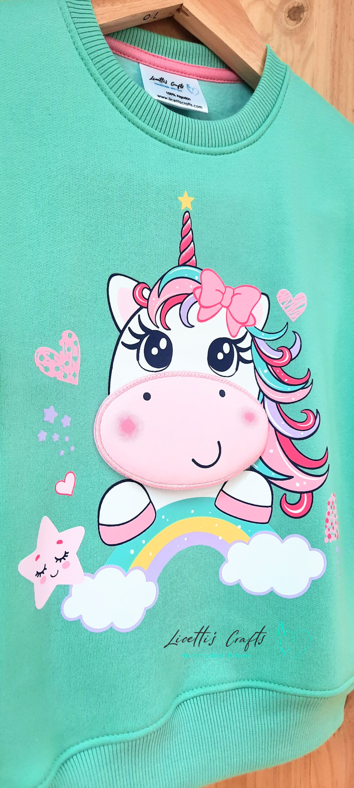 Sé el primero en valorar “Sudadera verde menta «Unicornio con boca»”